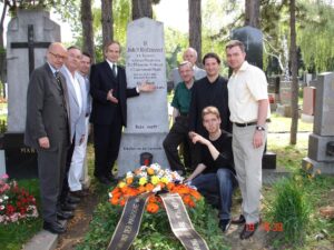 Die Familie HOFZINSER lässt sich über die Kirchenbücher bis in die Mitte des 17. Jahrhunderts zurückverfolgen. Fünf Generationen zurück wird der Vater von Mathias HOFZINSER, Bauer im Harzthal , der ein Frl. Susanne Schratt 1693 geheiratet hat, als noch lebender Schäfermeister in den Trauungsbüchern der Pfarrei Gamlitz in der österreichischen Südsteiermark geführt. Der aus dieser Ehe stammende Sohn Andreas, gelernter Bäcker, ist der Urgroßvater unseres berühmten Kartenkünstlers. In der Zwischenzeit habe ich circa 80 Familienmitglieder in einem richtigen Stammbaum mit mehreren Linien registrieren können. Fälschlicherweise wird seit Ottokar Fischer überall immer der 19. Juli 1806 kolportiert. So steht es zwar auf Hofzinsers Grabstein, ist aber ein Schreibfehler. Der mit Taufschein und anderen Dokumenten belegbare Geburtstag HOFZINSERs ist richtig der 19. Juni 1806(!).